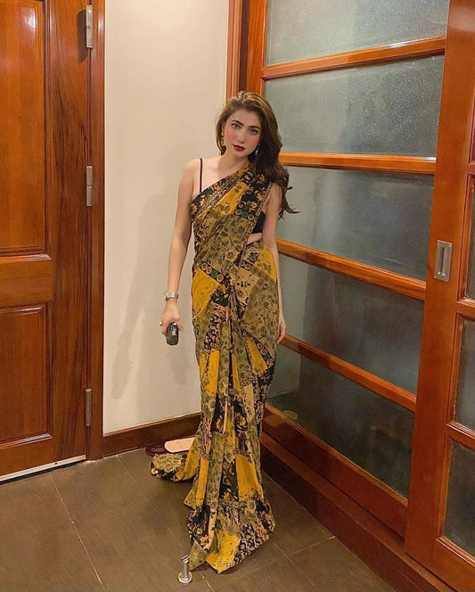 Mustard Printed Saree
