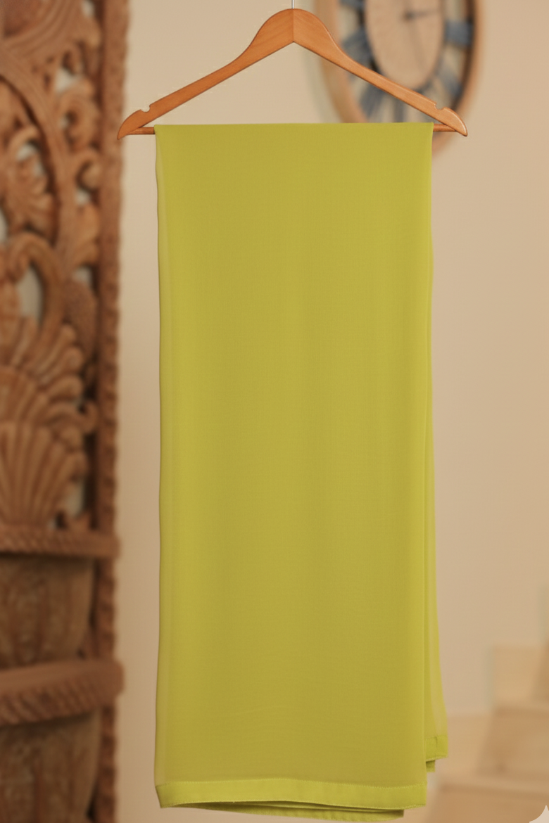 Elevate the look with silver earrings, soft curls, and a peach-nude makeup palette — letting the lime tone take center stage with its fresh, luminous charm.