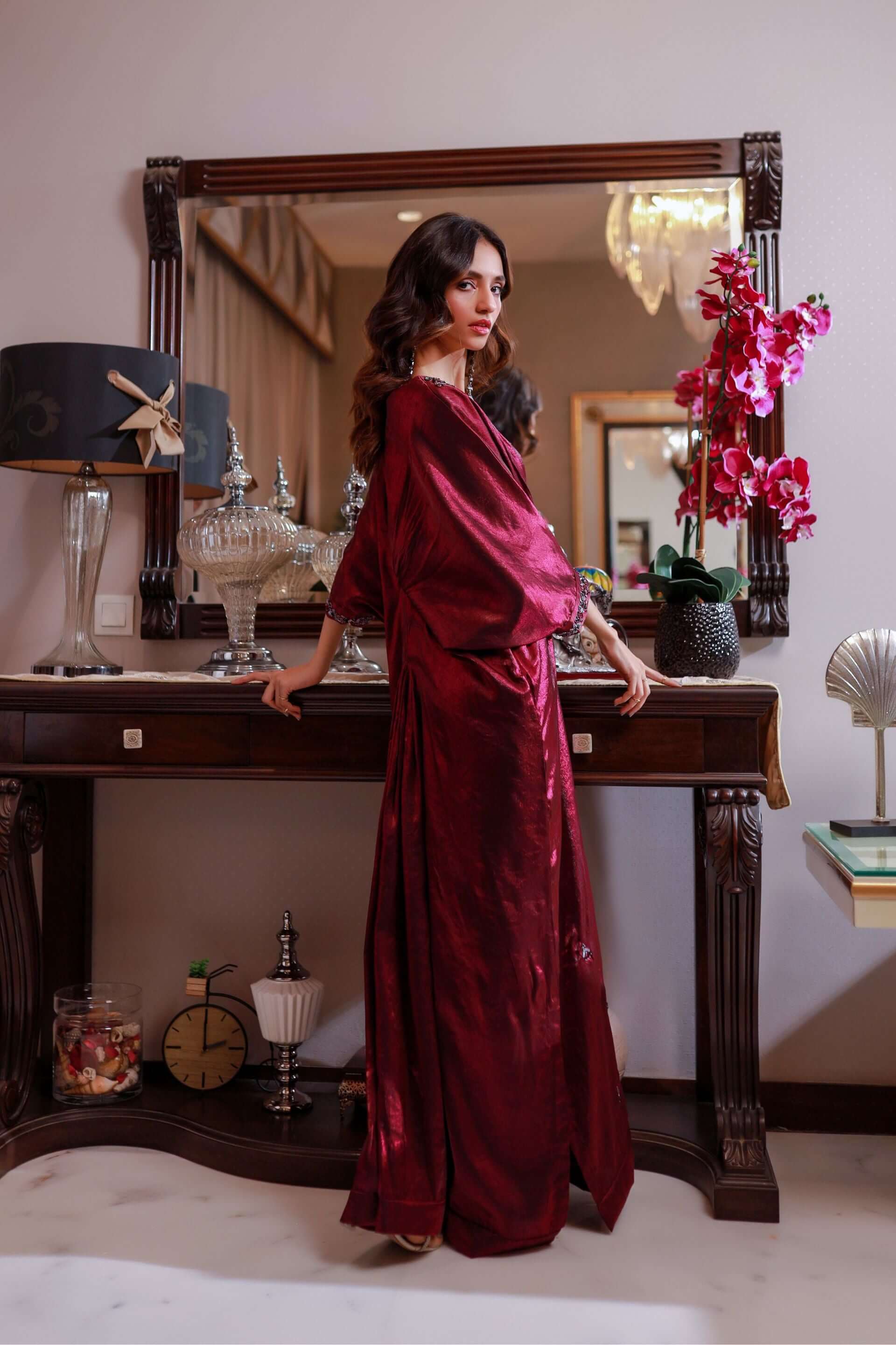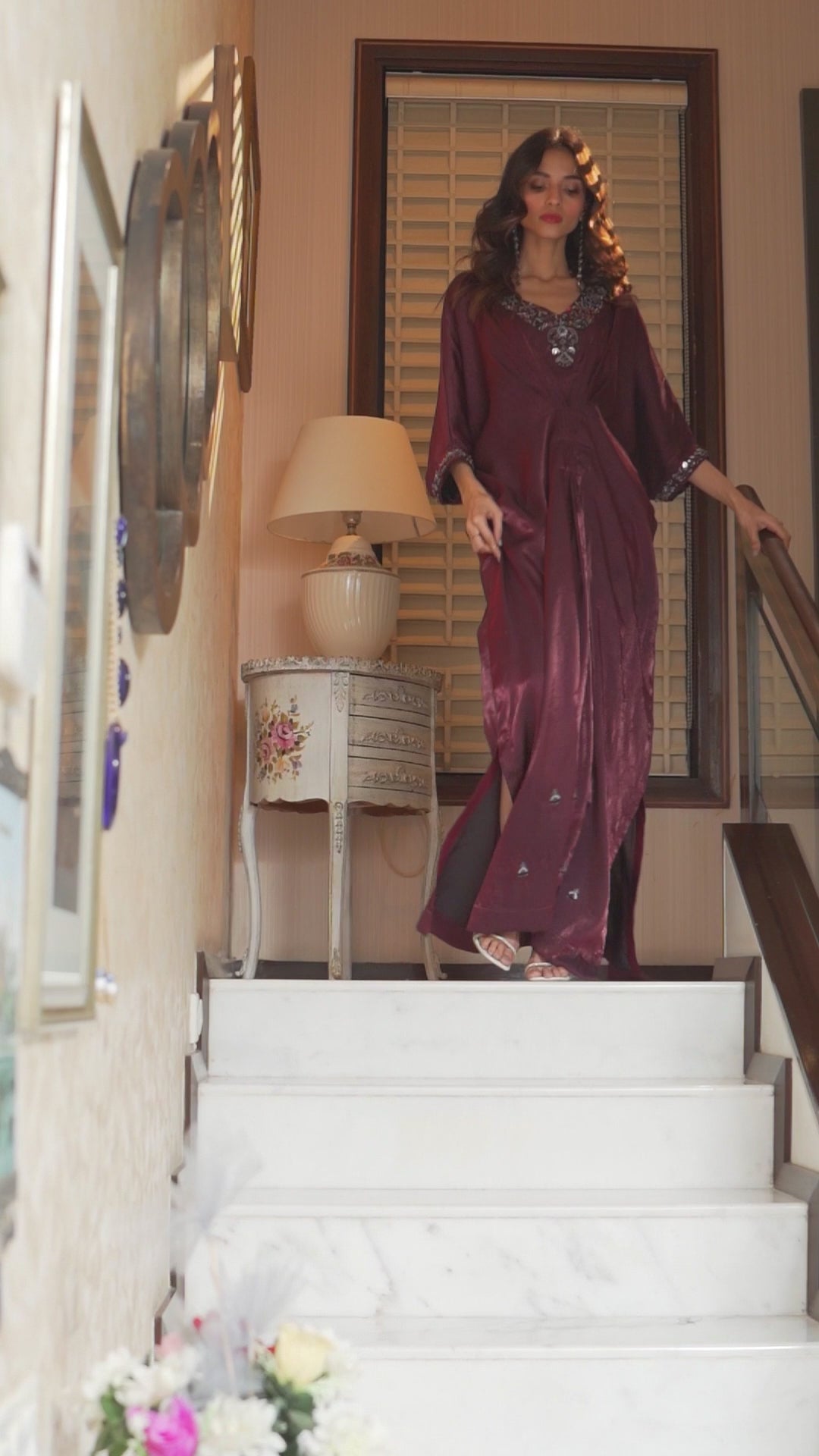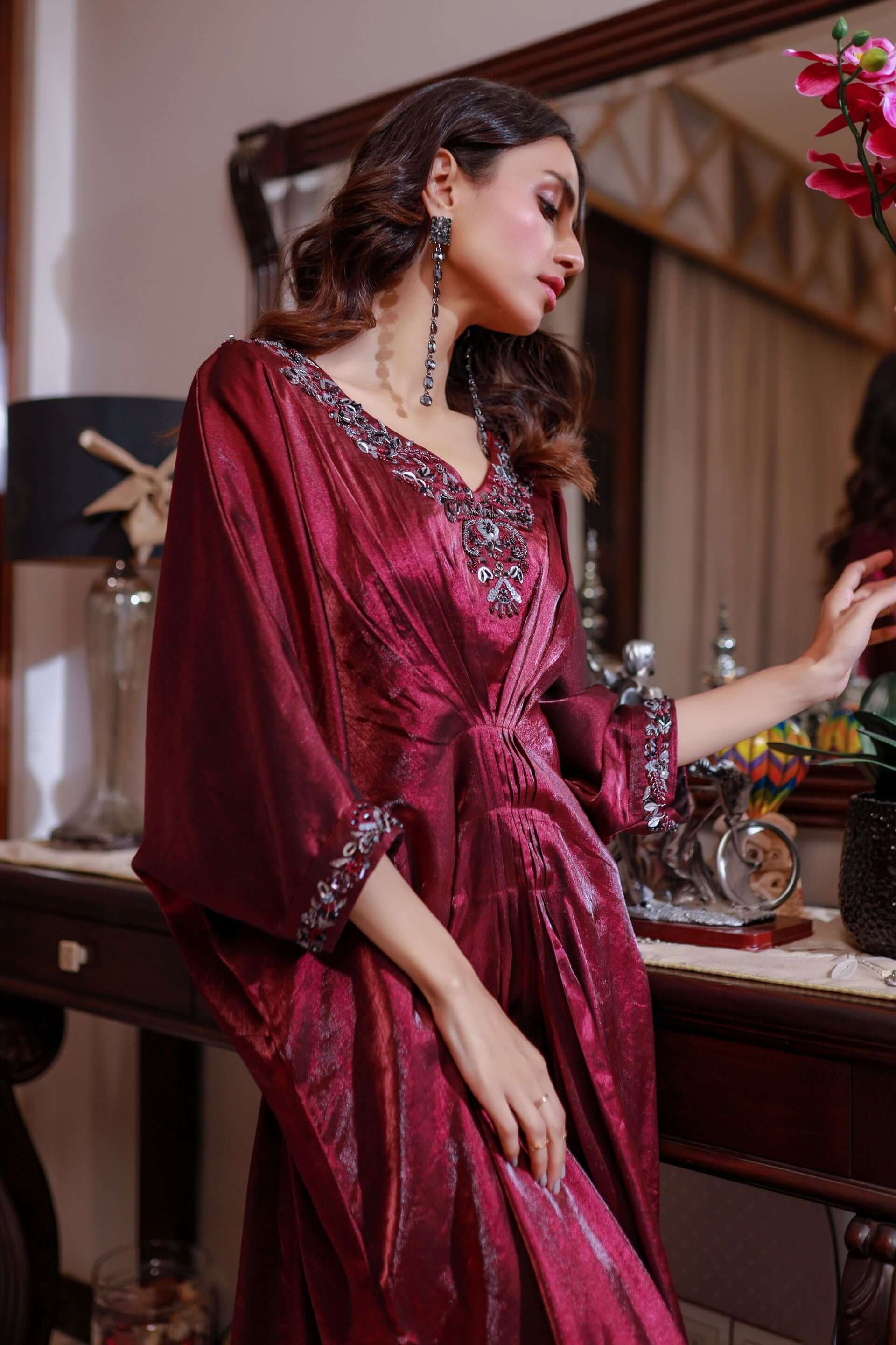 Sophisticated Plum Color: The Plum Color Hand Embroidered Kaftan Dress exudes a two-toned plum color that enhances the wearers’ charisma and style giving it versatility and versatility.