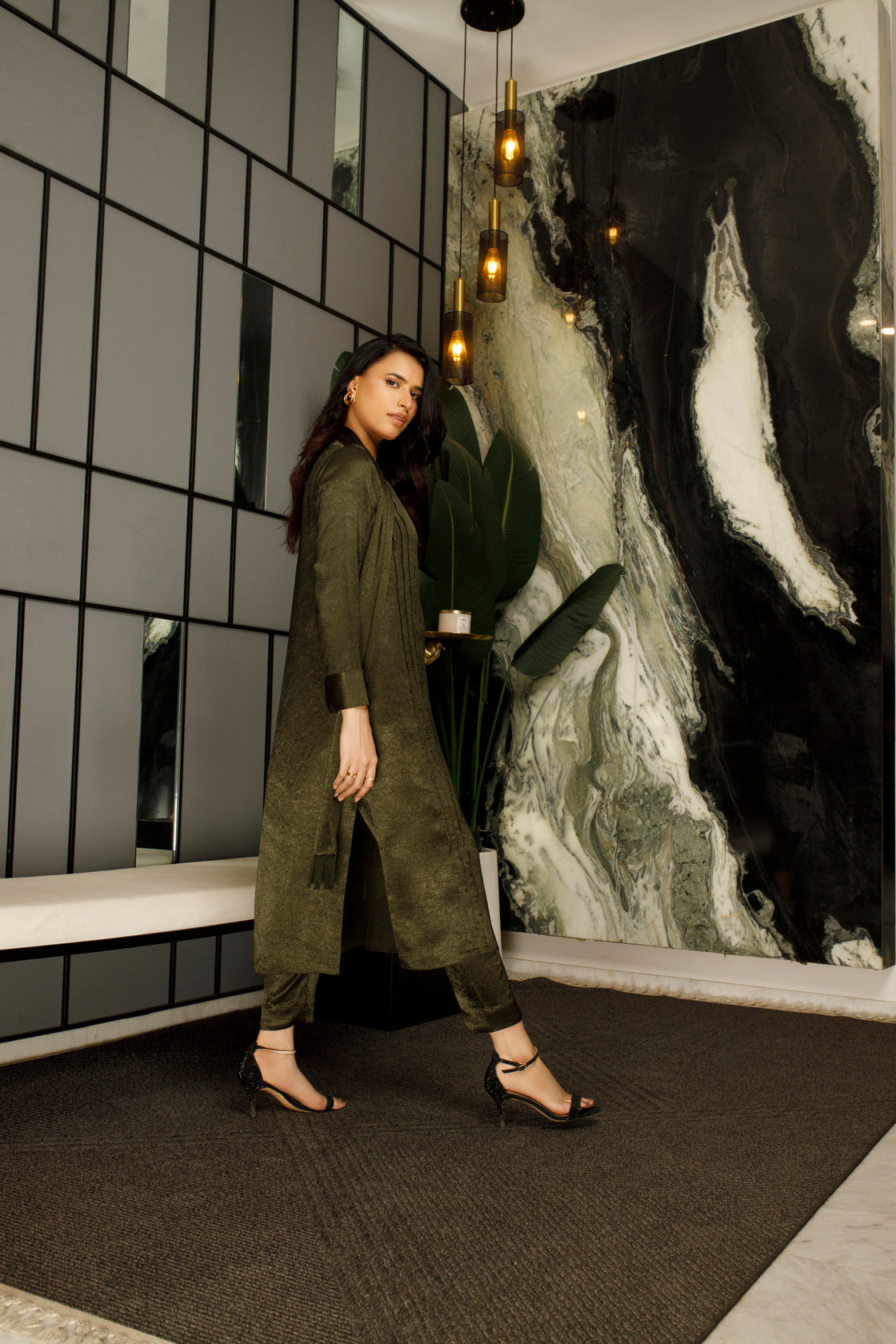 The Rifle Green Textured Silk Dress is not just clothing garment it is a style statement, fabric of art and something that will make you glow come any occasion.